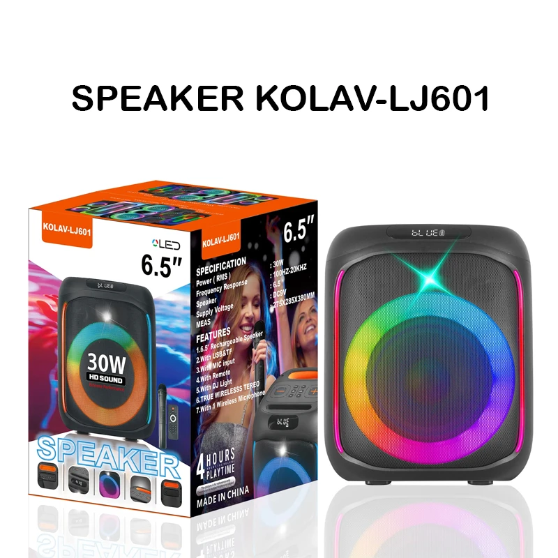 اسپیکر KOLAV-LJ601 یک اسپیکر بلوتوثی قابل حمل است که بسیار پرکاربرد بوده و طرف‌داران خاص خود را دارد. برخی از ویژگی‌های این اسپیکر عبارت‌اند از: